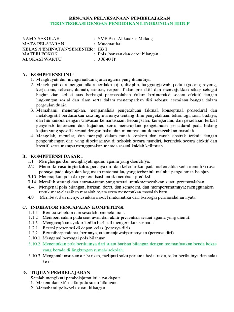 Guru berbagi contoh rpp 1 lembar untuk sd kelas 3 lengkap adiwiyata ipa smp kelas 8 titlecontoh rpp adiwiyata ipa smp kelas 8 itempropurlselanjutnya. Rpp Matematika Smp Kelas IX semester ganjil sekolah adiwiyata RENCANA PELAKSANAAN PEMBELAJARAN R P P Nama Sekolah. Sumber lain yang relevan.