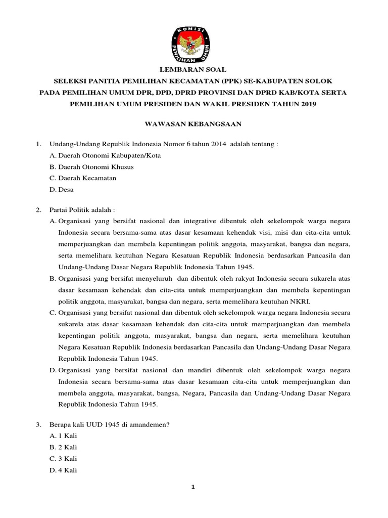 Contoh Contoh Soal Tes Calon Anggota Kpu Ppk Pps Ppln Resonansi Id