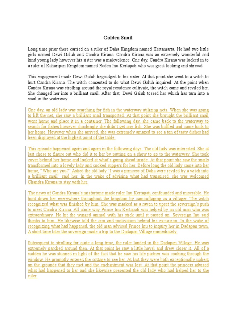 Narrative Text Golden Snail Pdf Document