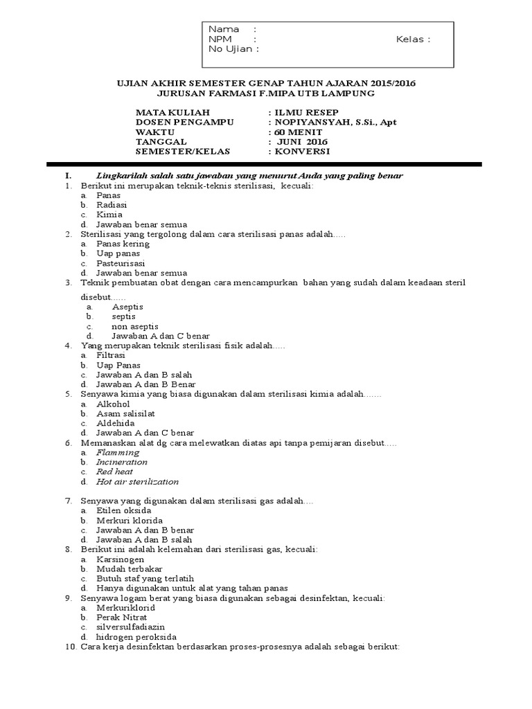 Soal ilmu resep smk farmasi. 15 sampai 30 c. Contoh file soal uts lengkap kelas 1 6 sd mi semua mata pelajaran 2016 2017 berikut ini adalah kumpulan dari berbagi sumber tentang contoh soal ukk smk farmasi yang bisa gunakan untuk bank soal download sd dan.