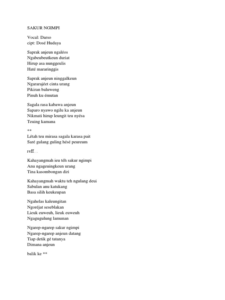 Vocal DARSOjudu lagu SAKUR NGIMPIDarso_sakur ngimpi. Chord Lagu Sakur Ngimpi - Darso Chord Lagu Sunda Darso Lirik Lagu Sunda Em Saprak anjeun ngaléos C Ngabeubeutkeun duriat D Hirup asa nunggeulis Em. 2 Racun Youbi Sister.