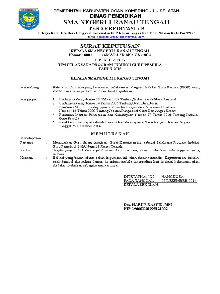 Download laporan program induksi guru mata pelajaran dan guru bimbingan dan konseling hal ini wajib dilaksanakan bagi guru pemula atau cpns yang ingin menuju pns. Contoh sk induksi guru pemula guru ilmu sosial. Contoh sk tim literasi sekolah format word.