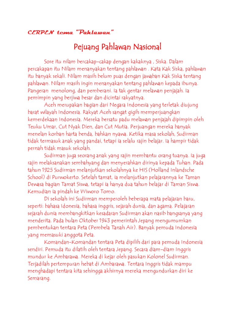 Contoh Cerpen Singkat Tentang Pahlawan Aneka Macam Contoh Cute766